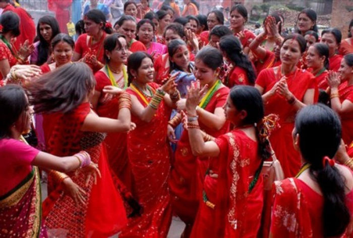 La sfarsitul lui august in Nepal se celebreaza Teej Festival, o sarbatoare a femeilor, cu ocazia careia se roaga lui Shiva pentru longevitatea si prosperitatea sotilor lor.Prima zi de festival, Dar Khane Din, ne-a luat prin surprindere in Monkey Temple din Kathmandu, unde femei imbracate in sari-uri rosii foarte frumoase depuneau ofrande Lingam-urilor. Barbatii se adunau in grupuri si cantau versuri din mici carticele, acompaniati de tobe, orgi si alte instrumente improvizate.Oamenii isi ofereau unii altora “dar” (mancare traditionala), zambeau tuturor si isi plimbau frumoasele haine de sarbatoare in jurul templelor. Maimutele pandeau din copaci bananele si le furau din mainile copiilor cand nu erau atenti. Puii de maimuta se ascundeau la pieptul mamelor cand ne apropiam prea mult. Maimutele-mama se incruntau. Comunicam fara cuvinte. Apoi, cate o toba rupea legatura creata, ele se ascundeau, noi ne dadeam deoparte, sa facem loc grupului care trecea.