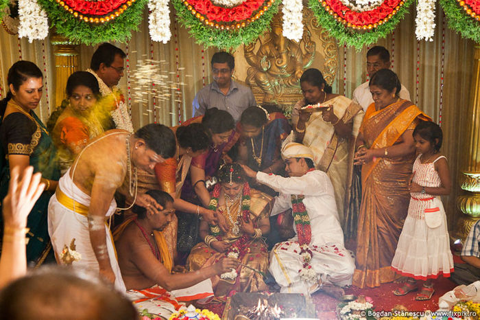 Kanya Agamana Mireasa este dusa catre mandap de catre unchiul ei. Cand aceasta ajunge in dreptul boltii, exista o antarpaat, o perdea, care o separa de mire. Un preot hindus incepe ceremonia iar perdeaua este data in jos pentru ca cei doi miri sa faca schimb de ghirlande. Ceremonia are loc in fata unui foc sacru si este condusa de un preot hindus.