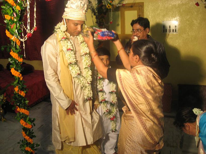 Madhuparka Mirele este intampinat de catre soacra lui in mandap, o bolta decorata sub care stau mirii in timpul ceremonie. Picioarele mirelui sunt spalate iar acestuia i se ofera miere si lapte. In acest timp saalis, cumnata acestuia va incerca sa fure pantofii mirelui. In mod traditional mirele trebuie sa plece de la nunta cu aceiasi pantofi cu care a venit. Daca pantofii ii sunt furati, el trebuie sa ofera cumnatei sale bani pentru a-i obtine inapoi.